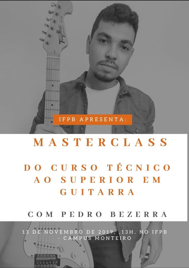 Masterclass "Do curso técnico ao superior em guitarra", será ministrado pelo ex-aluno do campus, Pedro Bezerra