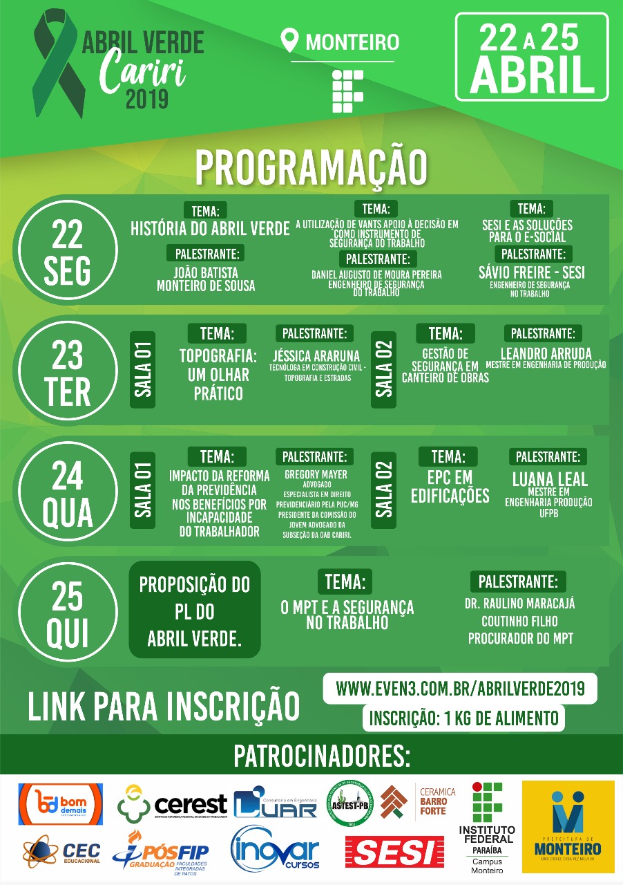 Campus Monteiro realizará 3ª edição do Abril Verde