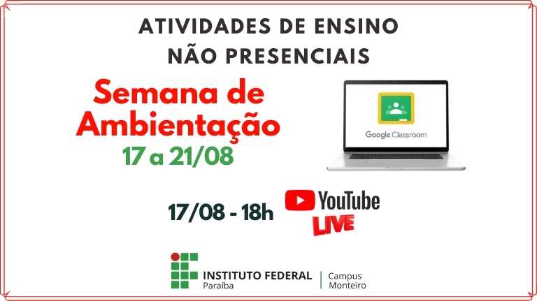 Semana de ambientação no Ambiente Virtual de Aprendizagem (AVA) Google Sala de Aula começa nesta segunda-feira, dia 17.