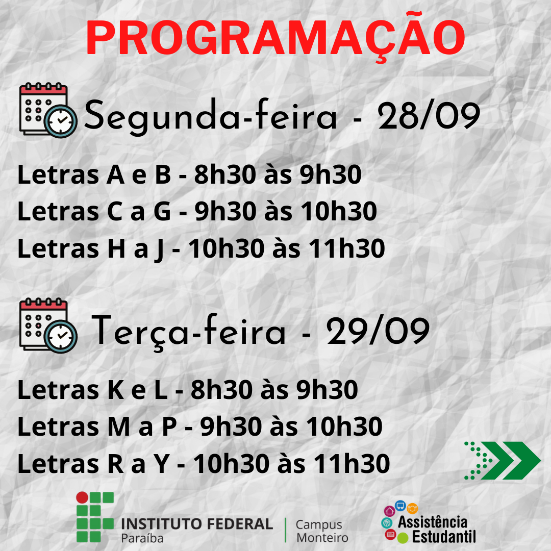A Direção-Geral do Campus Monteiro informa que as inscrições para o edital de IVS foram prorrogadas até o dia 11/09 (sexta-feira)