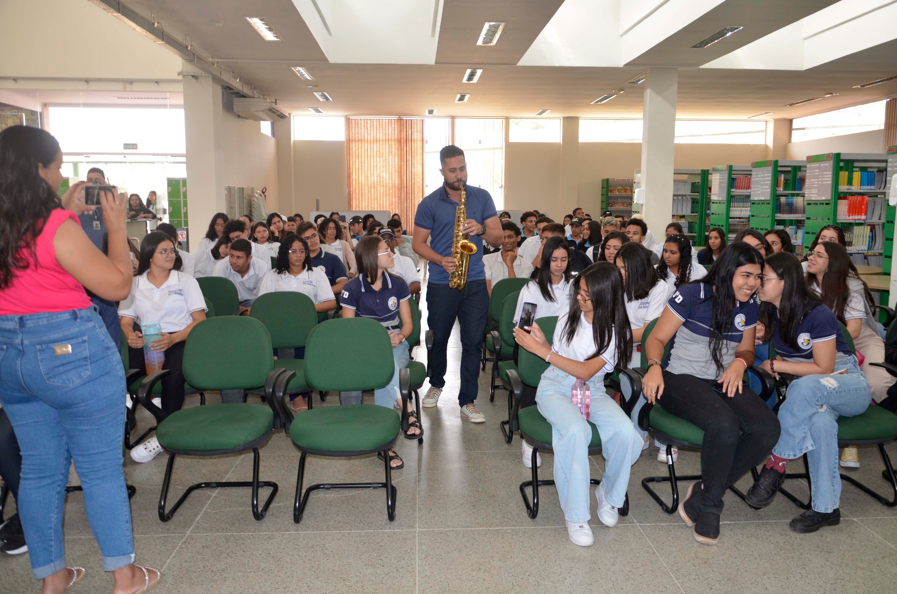 A visita teve início com uma recepção musical, apresentada pelo professor Igor de Tarso M. Bezerra. Em seguida, houve uma breve apresentação dos cursos, ministrada pelos Professores Whelson Oliveira de Brito, Coordenador do