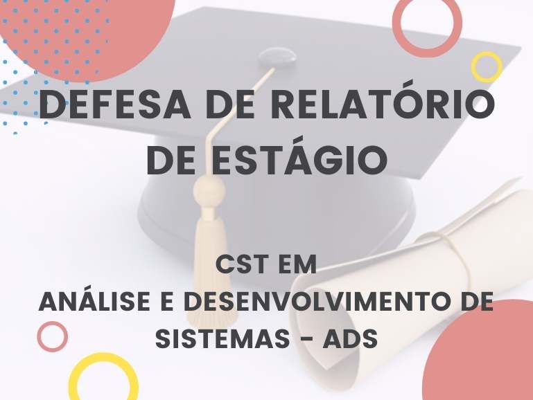 No dia 14 de junho de 2021, às 20h30. Defesa de Relatório de Estágio do discente Rafael Silva do Carmo, do curso de ADS. Em função do período de isolamento social pelo COVID-19, a defesa ocorrerá totalmente em ambiente virtual por meio da ferramenta Google Meet, de forma pública.