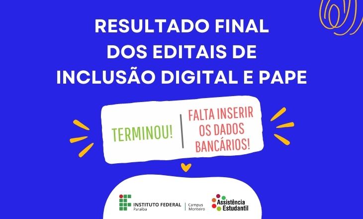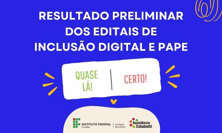 Foi publicados os resultados preliminares dos Editais 24 e 25/2021 referentes ao Programa de Apoio à Permanência do Estudante (PAPE) e Auxílio Inclusão Digital
