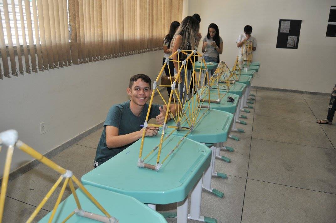 Estudantes de Edificações constroem Ponte de Macarrão durante a VI SEMATEC