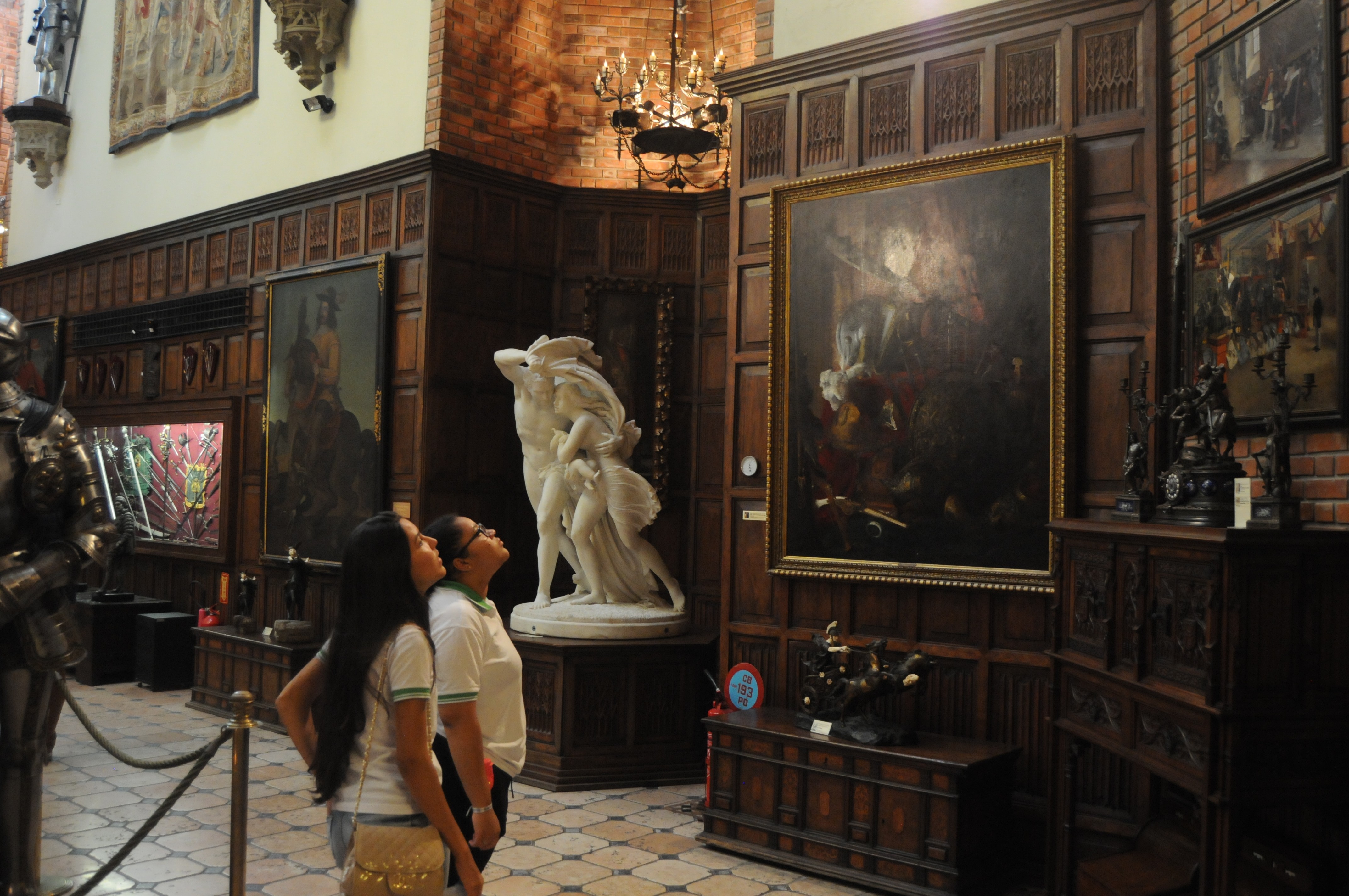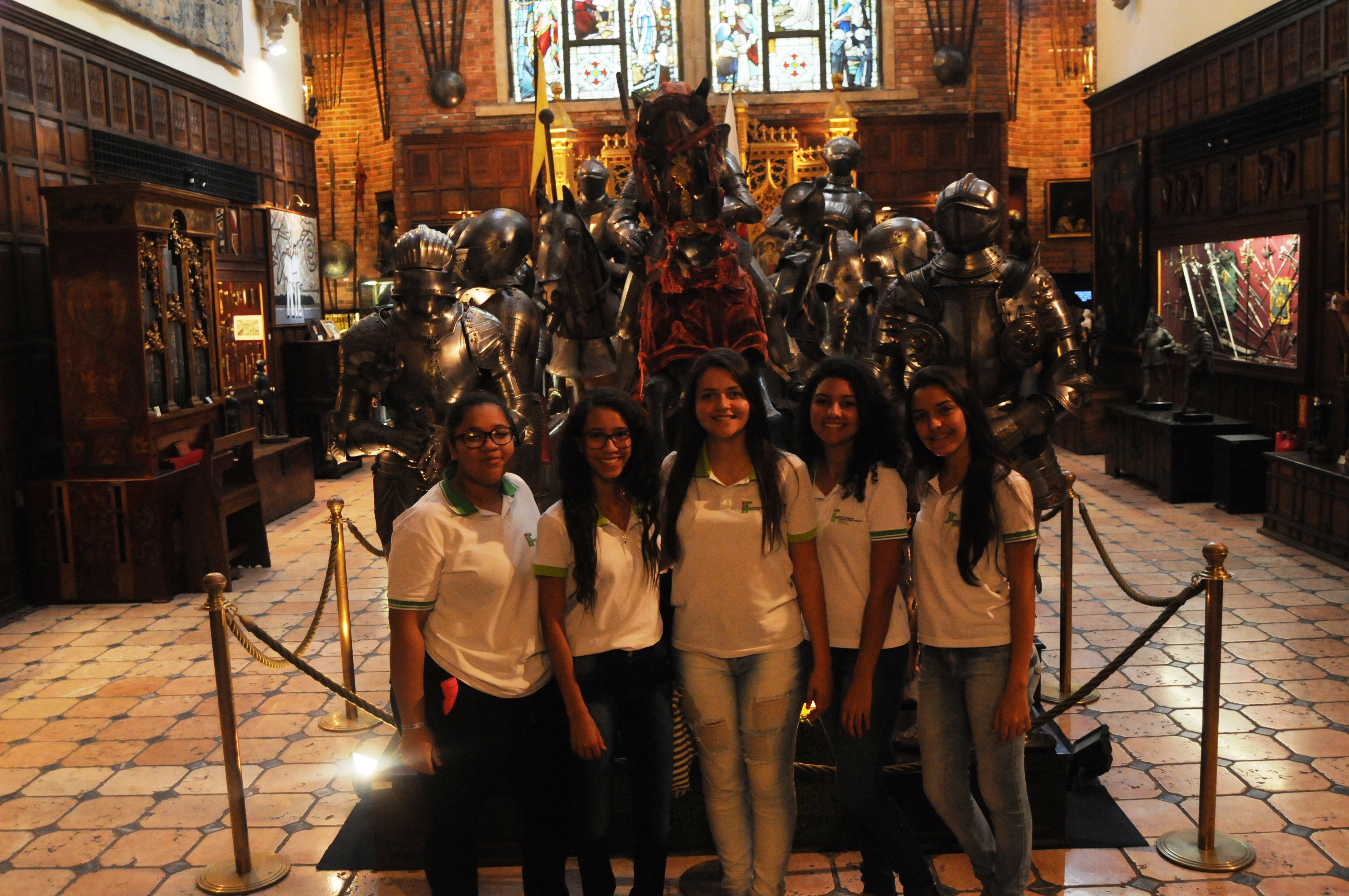 Os alunos conheceram a coleção de armas, armaduras, tapetes e quadros do período medieval, bem como a Biblioteca do Instituto Brennand.