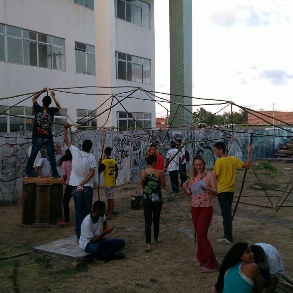 Nos dias 06 e 07 de novembro ocorreu no Campus Cabedelo, a convite da professora Rebeca Vinagre, coordenadora de Projetos Especiais, uma Oficina de Domo Geodésica, promovido pela professora de matemática Maira Rodrigues Villamagna do campus Patos, que construiu juntos com os alunos do integrado e subsequente uma cúpula geodésica de 10 metros de diâmetro e 03 metros de altura com o material de bambu, para a área de permacultura.