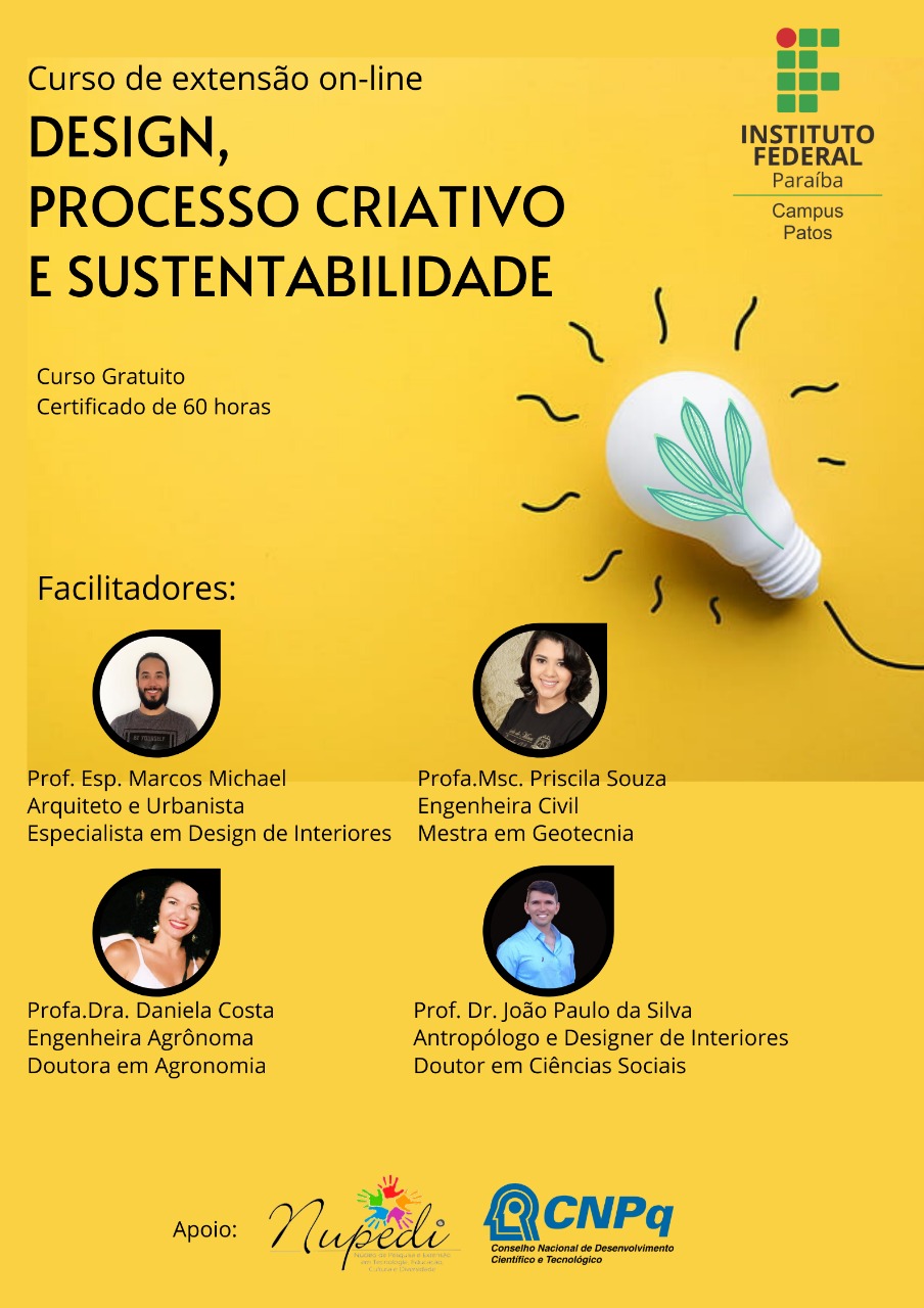 O Núcleo de Pesquisa e Extensão (NUPEDI) do Campus Patos oferta curso na área de Design e Meio Ambiente.