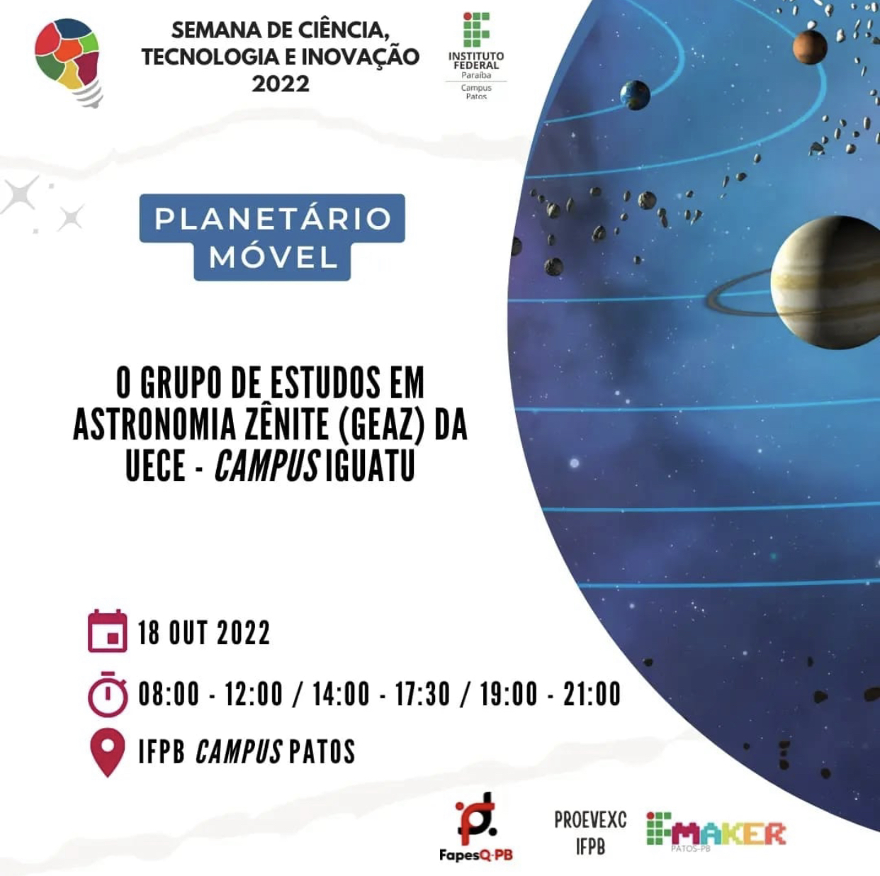 O Grupo de Estudos em Astronomia Zênite (GEAZ) da Universidade Estadual do Ceará esteve na IX SEMANTEC 2022.