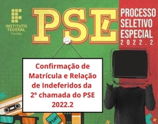 Edital nº 44/2022, confirmação de matrícula da 2ª chamada dos candidatos classificados no Processo Seletivo Especial.