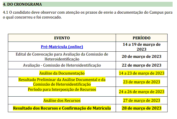 Edital dos candidatos às vagas reservadas para negros (pretos e pardos) e indígenas autodeclarados para ingresso nos cursos de graduação.
