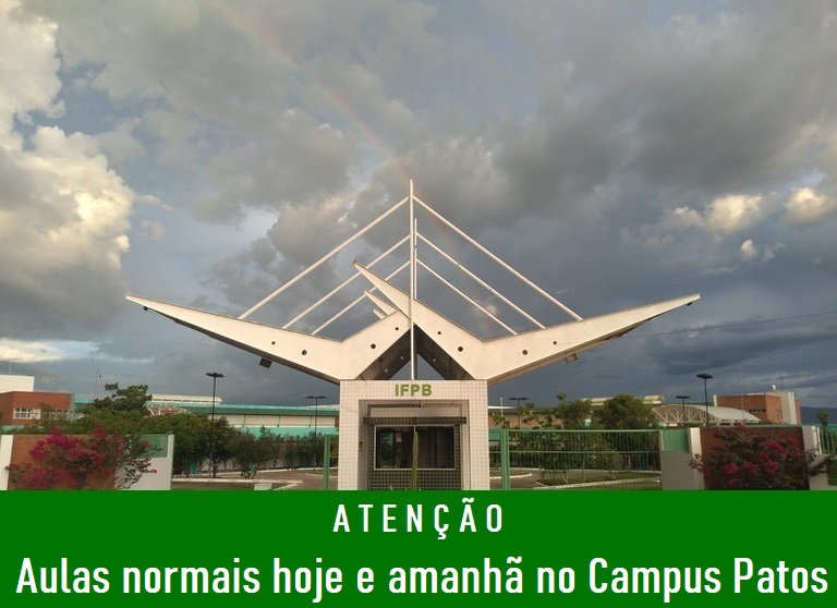 Campus Patos comunica que nos dias 16 e 17/03 do corrente terão aulas normais nos três turnos para os Cursos Integrados, Subsequentes e Superiores.