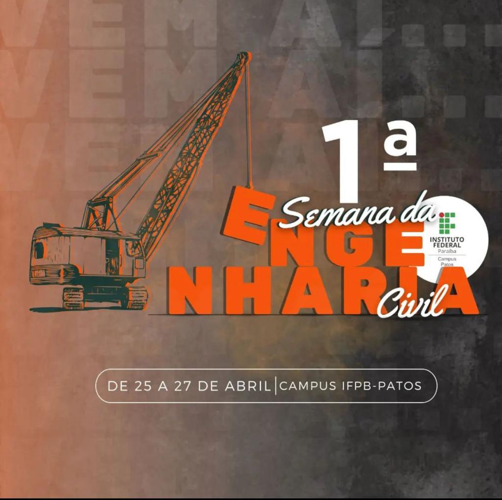 I Semana Acadêmica da Engenharia Civil do IFPB campus Patos, entre os dias 25 a 27 de abril serão 3 dias de interação e aprendizados.