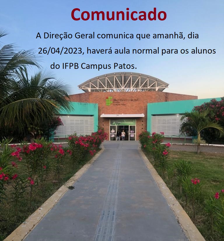 IFPB Campus Patos comunica sobre aulas na quarta-feira (26/04).