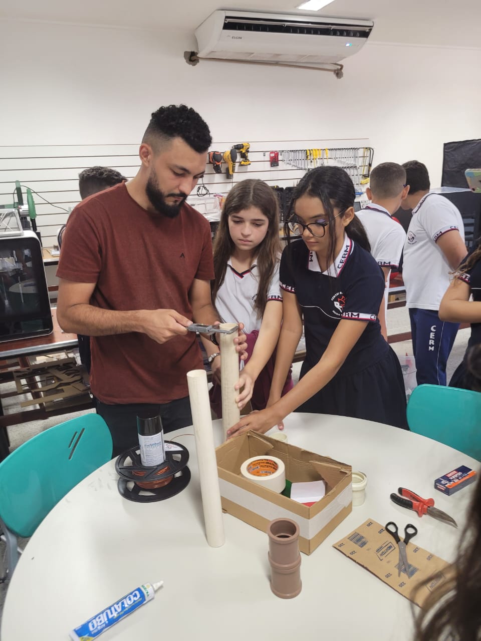 No primeiro momento, a turma do 7º ano visitou o laboratório do IF Maker, conheceu os projetos que são desenvolvidos no laboratório, coordenado pelo professor Filipe Lucena e pela professora Maíra Villamagna. Com o objetivo de desenvolver um projeto de ensino voltado para a astronomia, os alunos construíram uma luneta sob a orientação de Jucelio Torres, acadêmico do curso de engenharia do IFPB Campus-Patos. Os alunos também Conheceram os laboratórios de matemática, física e biologia.