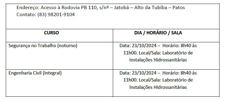 Campus Patos convoca estudantes para assinatura de Contrato de Estágio