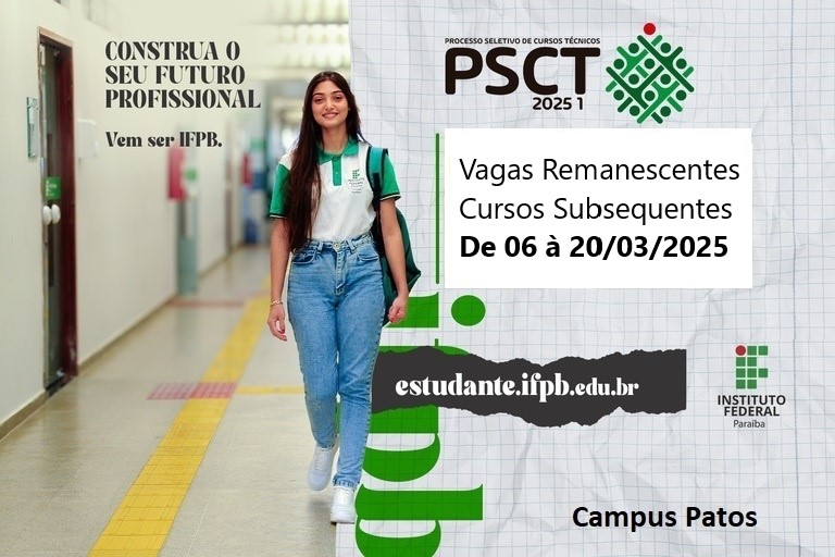 Campus Patos publica Edital de 2ª Chamada do PSCT 2025, cursos Integrados
