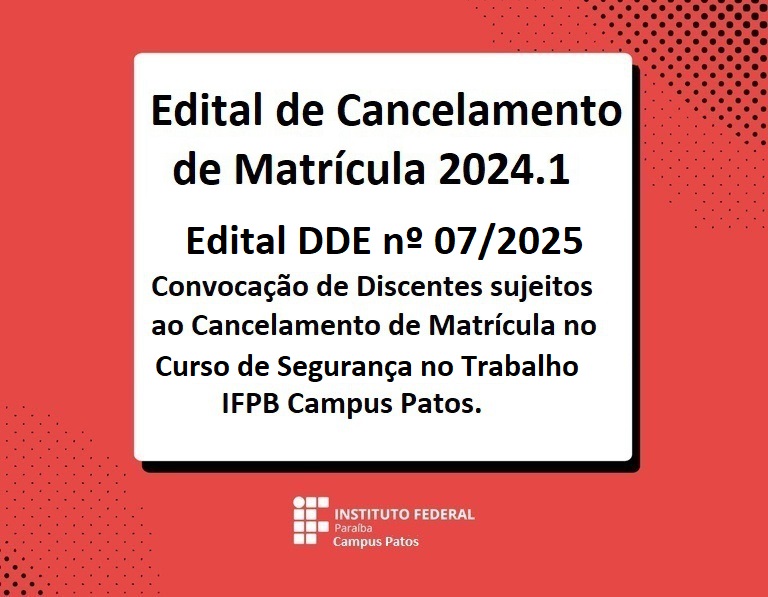 Edital de convocação de discente sujeito ao cancelamento de matrícula no Semestre 2024.1, Curso de Segurança no Trabalho.