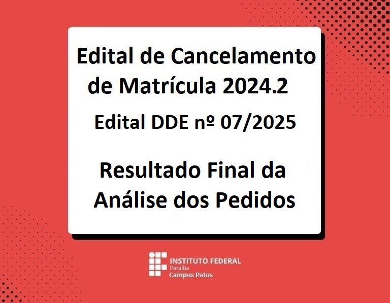 Campus Patos publica confirmação de matrícula da 3ª Chamada do PSCT 2025, cursos Integrados