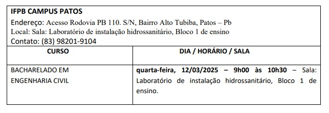 O Instituto Federal de Educação, Ciência e Tecnologia da Paraíba – IFPB, Campus Patos, através da Diretoria de Desenvolvimento de Ensino e de acordo com as disposições da legislação em vigor, convoca, por meio do Edital DDE nº 18/2025, os candidatos às vagas reservadas para negros (pretos e pardos) e indígenas autodeclarados no ato da inscrição e na pré-matrícula de ingresso nos cursos superiores ofertados pelo IFPB através do Processo Seletivo SISU 2025, para o procedimento de verificação de veracidade da autodeclaração, conforme o Edital abaixo: