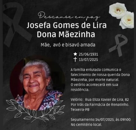Josefa Gomes de Lira, Dona Mãezinha, mãe do professor José Carlos Gomes do IFPB Campus Patos.