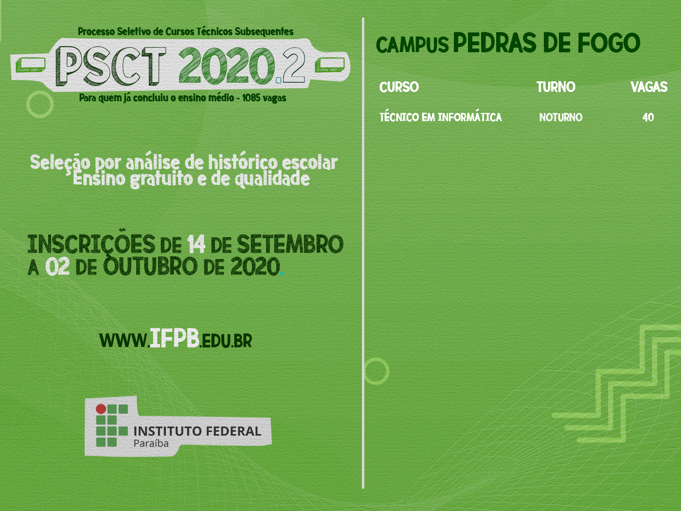 Inscrições para os Cursos Técnicos Subsequentes do IFPB são prorrogadas