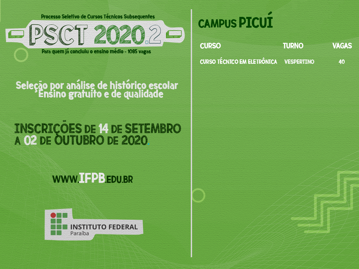 Em Picuí há 40 vagas para o Curso Técnico em Eletrônica. Inscrições terminam dia 02/10