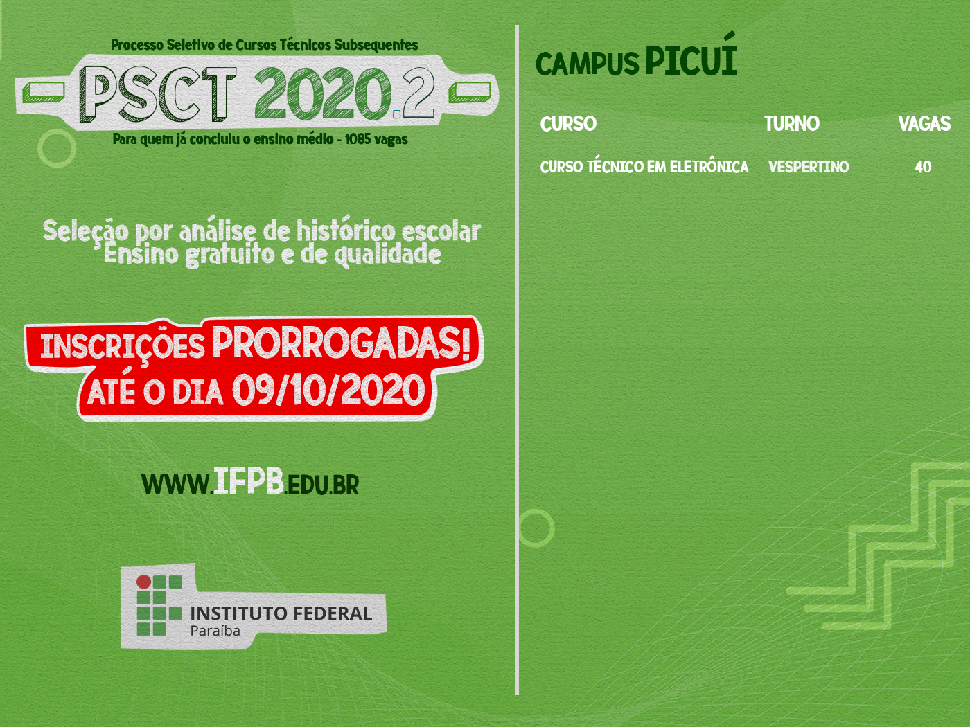 IFPB prorroga prazo de inscrições do PSCT 2021