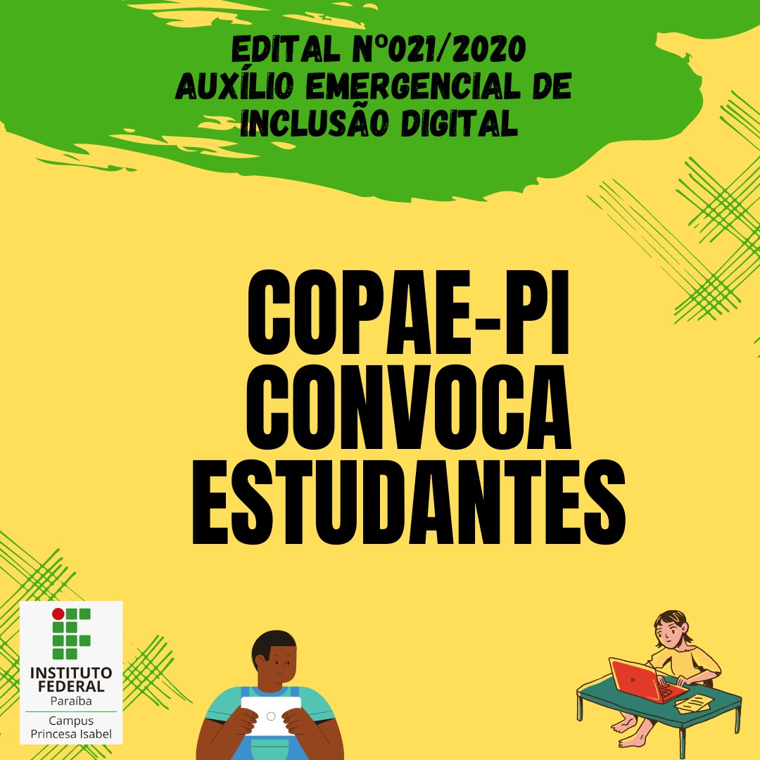 A Coordenação Pedagógica e de Apoio ao Estudante (COPAE) convoca os estudantes para prestação de contas referente ao Auxílio Emergencial de Inclusão Digital.