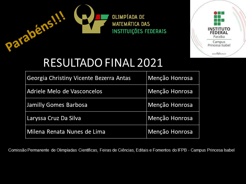 DIVULGADO RESULTADO OLIMPÍADA NACIONAL DE CIÊNCIAS