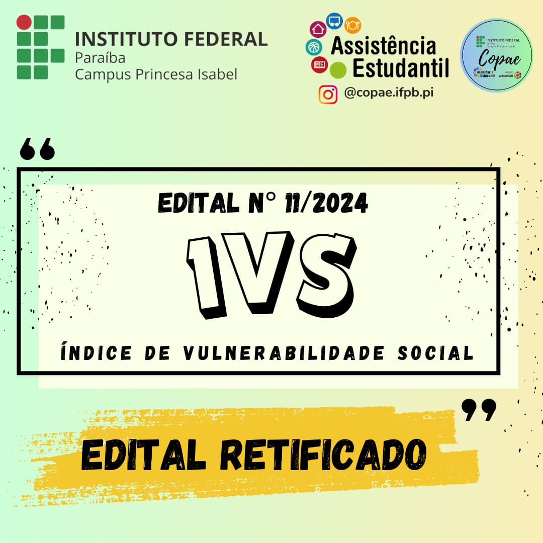 Publicado nesta segunda-feira (02) a retificação do Edital nº 11/2024 de IVS