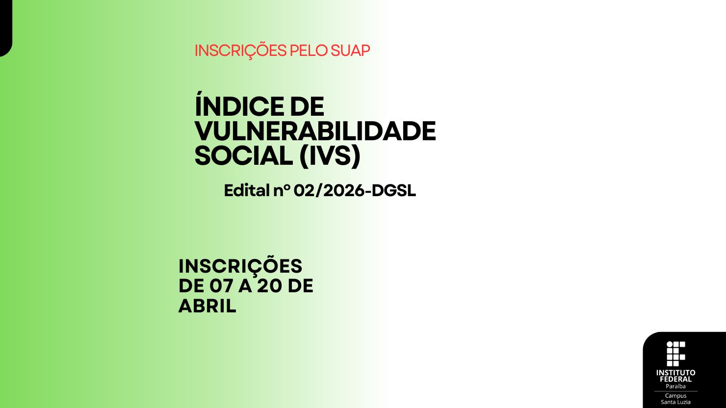 Inscrições vão do dia 07 a 20 de abril
