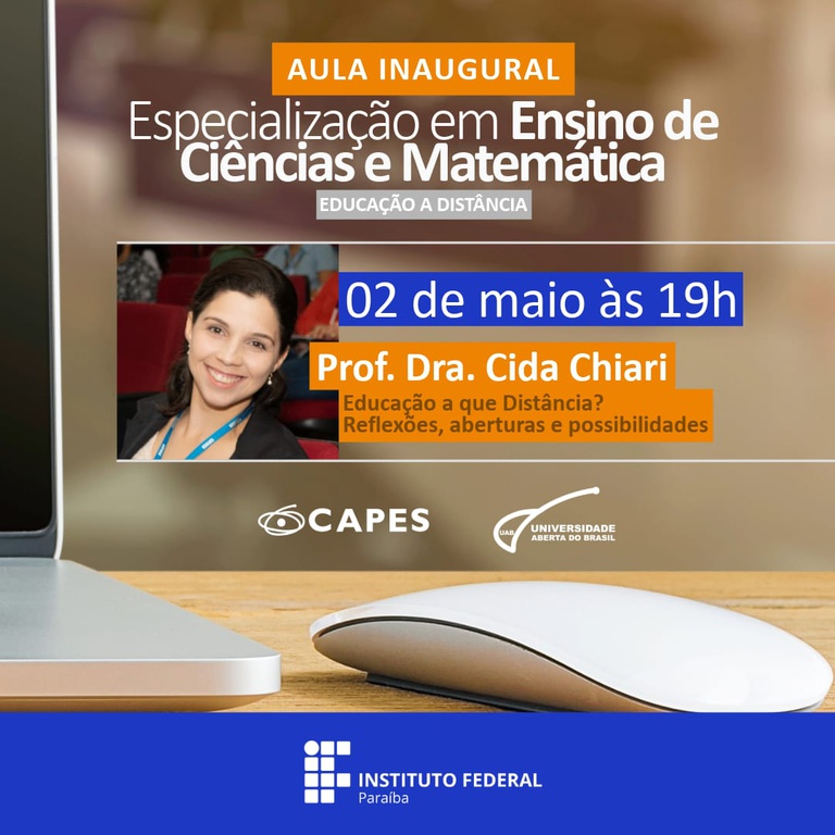 Realização, na noite do dia 2 de maio, de Aula Inaugural do Curso de Especialização em Ensino de Ciências e Matemática