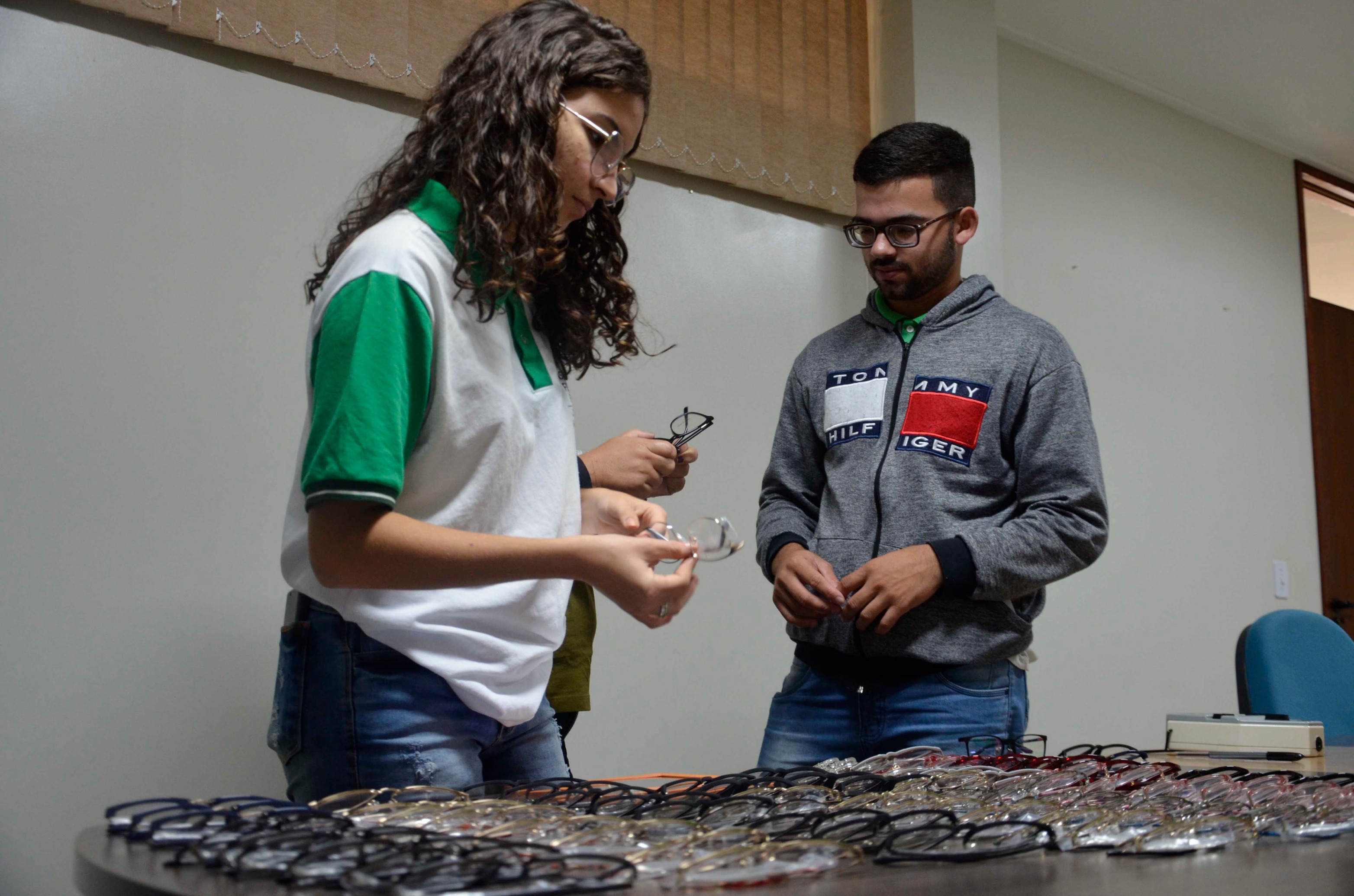 Alunos escolhem armação para óculos, através do Programa de Saúde do Estudante