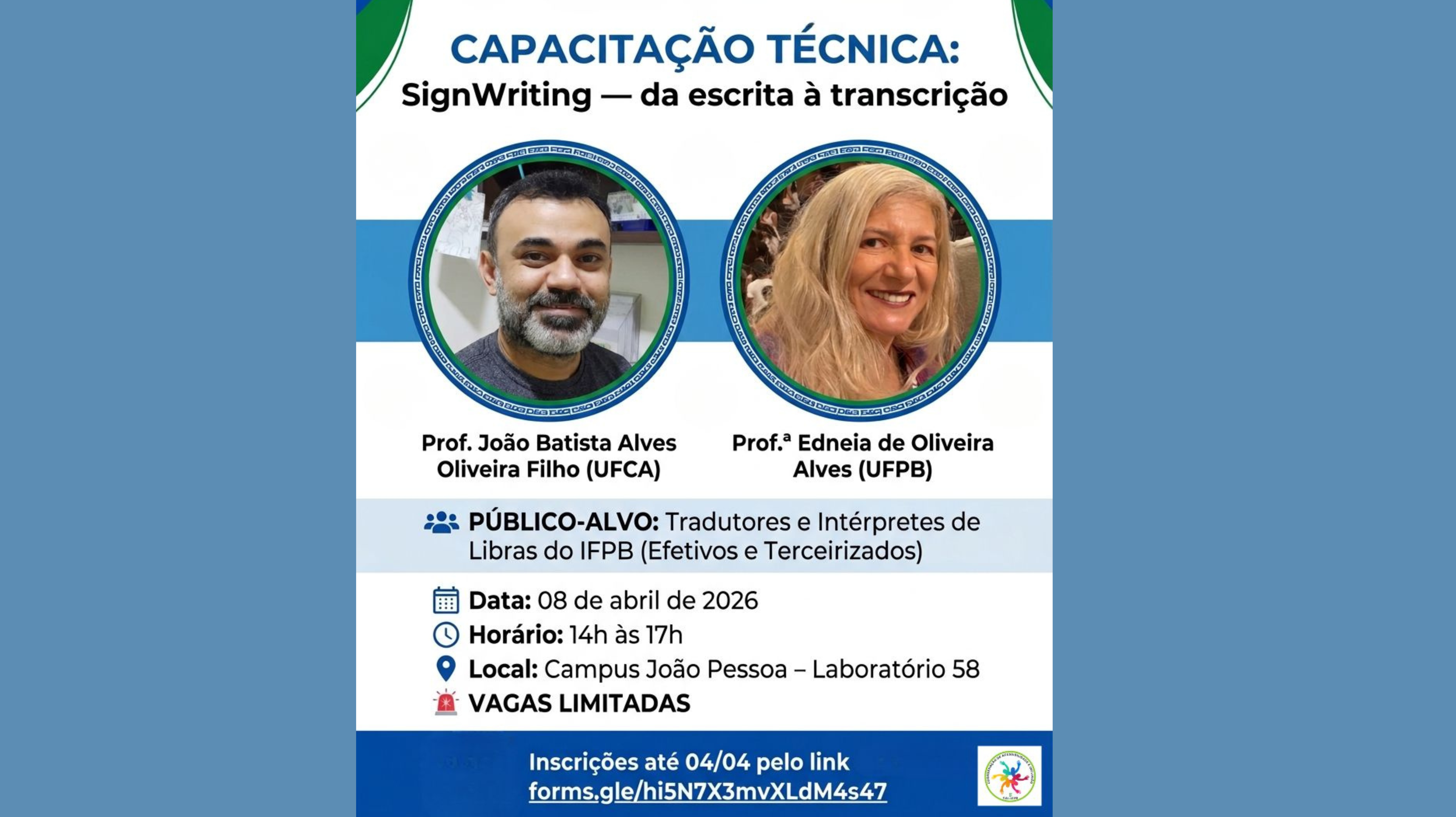 Capacitação em SignWriting recebe inscrições até dia 04 de abril