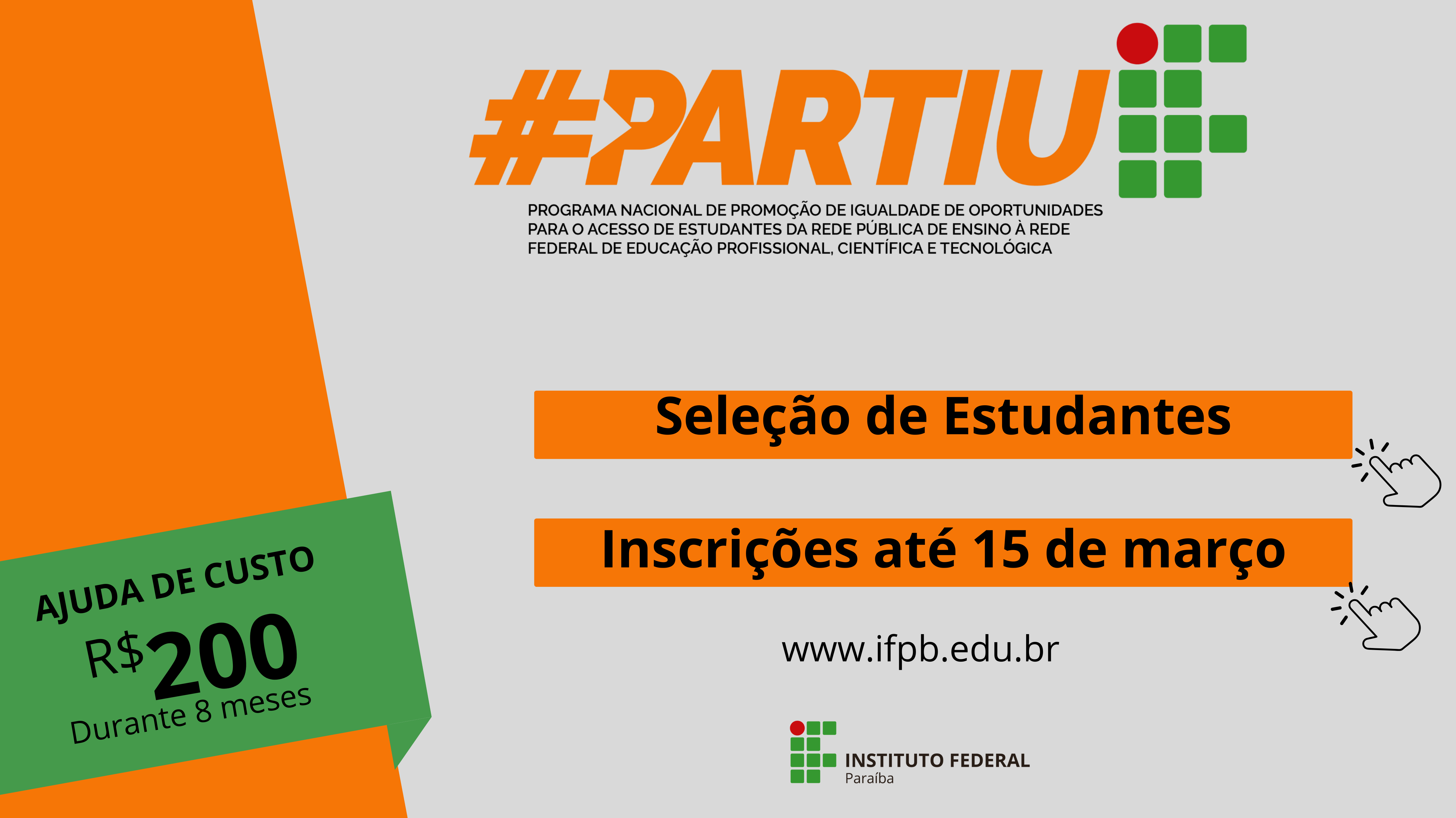 IFPB abre inscrições para estudantes participarem do Programa Partiu IF