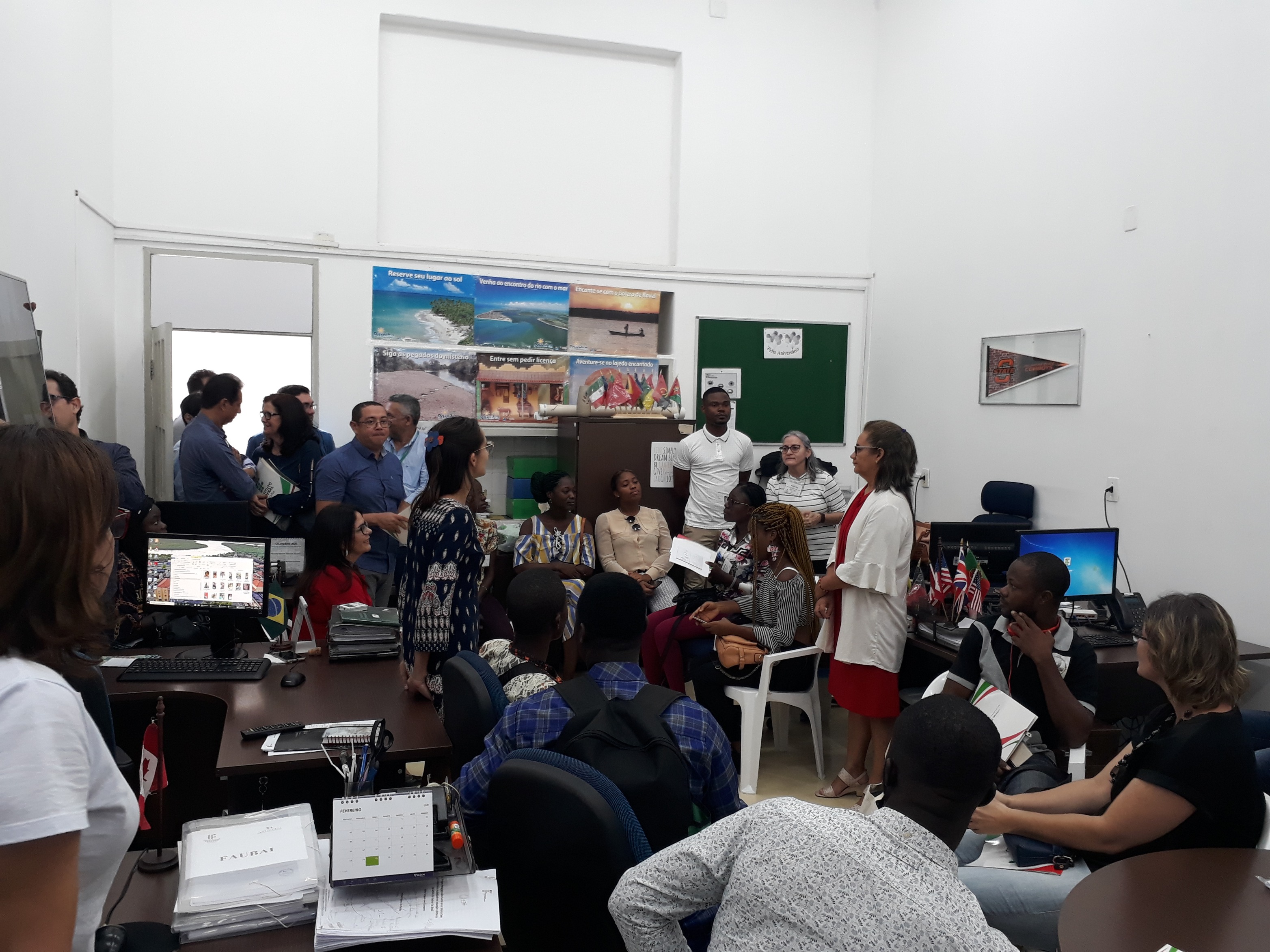 Em seguida os estudantes participaram de uma reunião de ambientação na sala da Assessoria de Relações Institucionais e Internacionais (Arinter), com as presenças da Leitora Francesa, docente formadora do PEC-G, Josephine Correia; diretor do Campus João Pessoa, Neilor César; coordenadores de cursos; diretora de Relações Interistitucionais da UFPB, Ana Berenice Martorelli e da coordenadora do PLEI, Oriana Fulaneti.