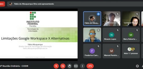 apoio educacional. O Diretor de Tecnologia da Informação, Fábio Albuquerque, apresentou as mudanças na plataforma do Google Workspace (G Suite) que envolverão custos para que a instituição possa continuar usufruindo de alguns recursos que hoje são gratuitos e apresentou também alternativas sem custos financeiros. Dentre essas possibilidades foram apresentadas a plataforma Microsoft Teams e também a utilização de softwares livres para a gravação de aulas e webconferências.