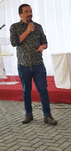 Logo em seguida, o poeta e cordelista Tiago Monteiro declamou para os presentes. Ele é membro da Academia de Cordel do Vale do Paraíba, da Academia Internacional de Literatura Brasileira e tem várias obras publicadas.