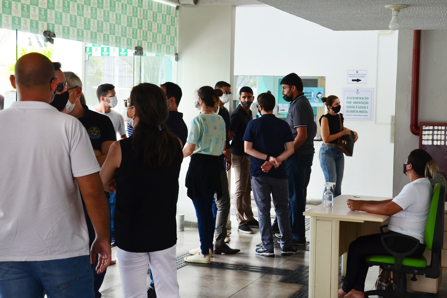 A seção eleitoral dispõe de álcool em gel na mesa de assinatura e o eleitor precisa usar máscara de proteção. Medidas também foram tomadas para evitar aglomeração. Três candidatos concorrem à reitoria: Denis Barros Barbosa, Marcus Damião Lacerda e Mary Roberta Marinho.