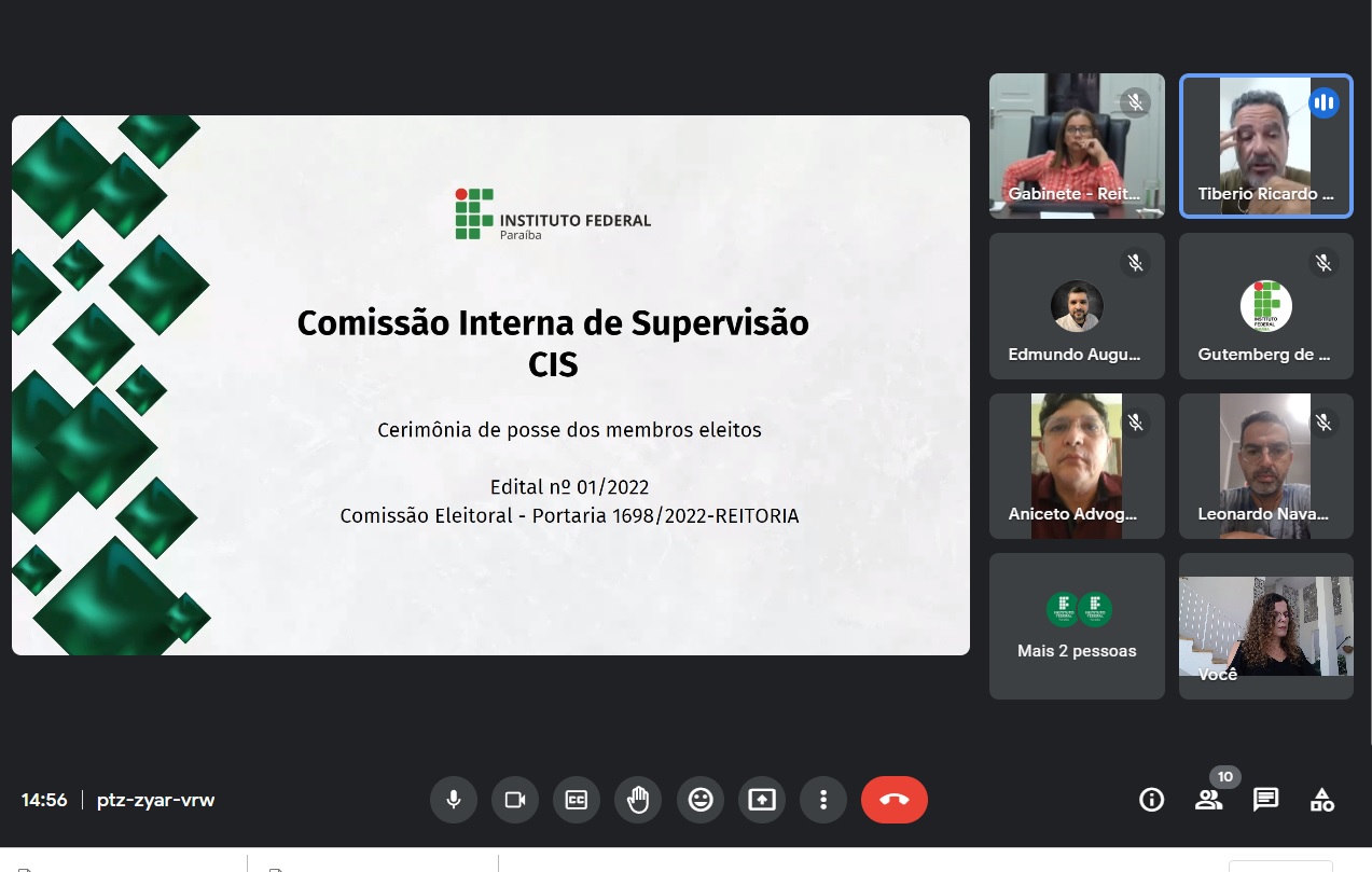 O Instituto Federal de Educação, Ciência e Tecnologia da Paraíba (IFPB) realizou na tarde desta terça-feira (14) a solenidade de posse dos membros da Comissão Interna de Supervisão (CIS) do Instituto Federal de Educação, Ciência e Tecnologia da Paraíba, eleitos para o biênio 2023-2024. A solenidade foi presidida pela reitora, Mary Roberta Meira Marinho, com a presença dos servidores eleitos para compor a CIS do IFPB e, a convite da reitora, também estavam presentes os servidores Tibério Ricardo de Carvalho Silveira e Rafael Torres Correia Lima, representando a gestão anterior da CIS.