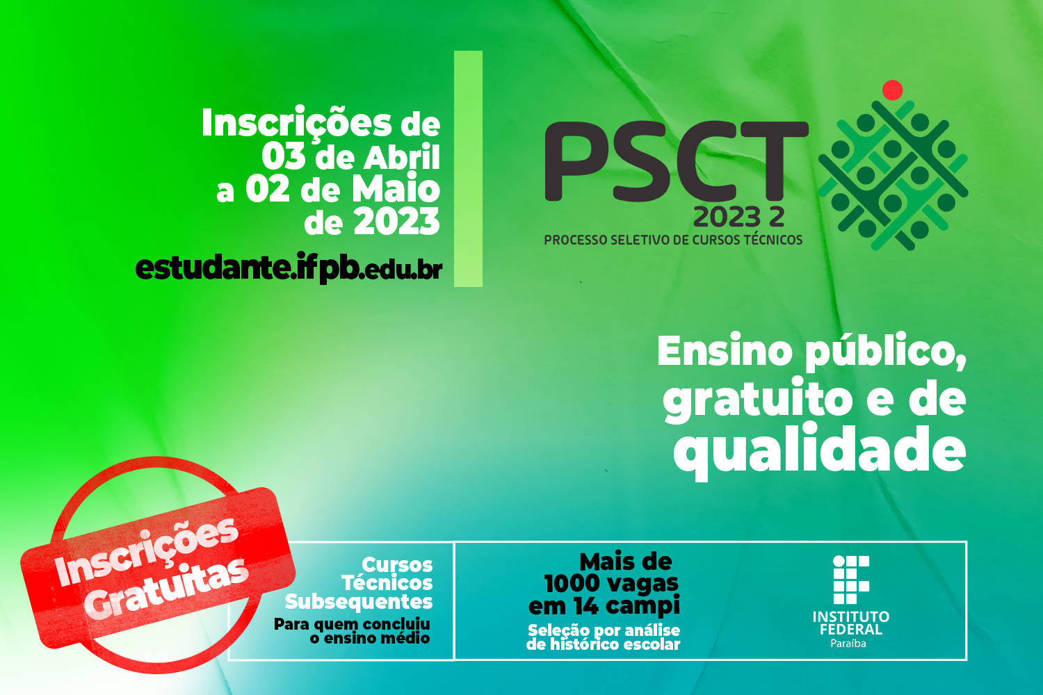 PSCT 2023.2: Inscrições abertas para 1060 vagas em cursos técnicos gratuitos