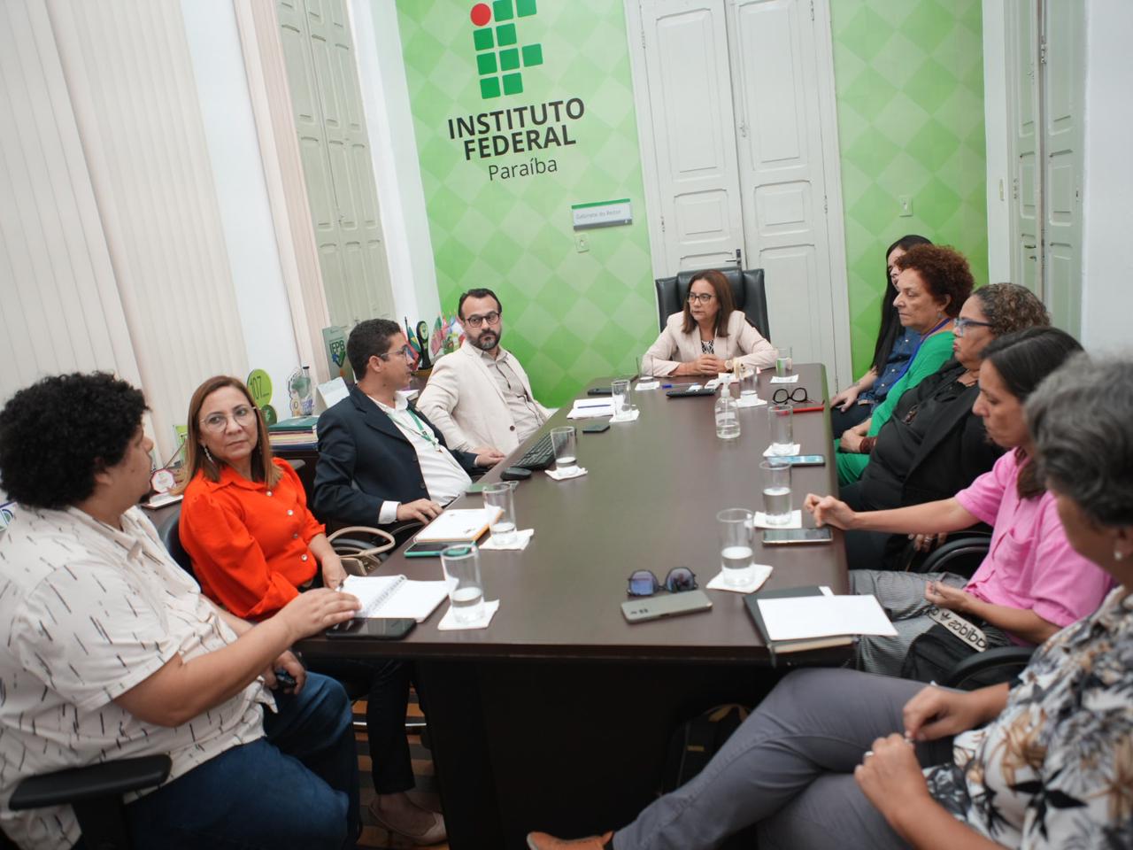 A reitoria do Instituto Federal da Paraíba recebeu nesta segunda-feira, à tarde, a visita de gestores do Ministério da Cultura (Minc), e de produtores, pesquisadores e gestores do meio cultural no estado. A reitora Mary Roberta Marinho, a pró-reitora de Extensão e Cultura, Josi Batista, e o diretor de Cultura, Erivan Lopes Tomé Junior, se reuniram com o secretário executivo adjunto do MinC, Cassius Rosa; a coordenadora do Escritório do MinC na Paraíba, Rejane Nóbrega, a analista do Escritório do MinC-PB, Raisa Agra; além dos membros do Fórum de Produção Cultural da Paraíba, Alexandre Santos, além de Kátia Regina, Bárbara Duarte Lira e Dina Faria.