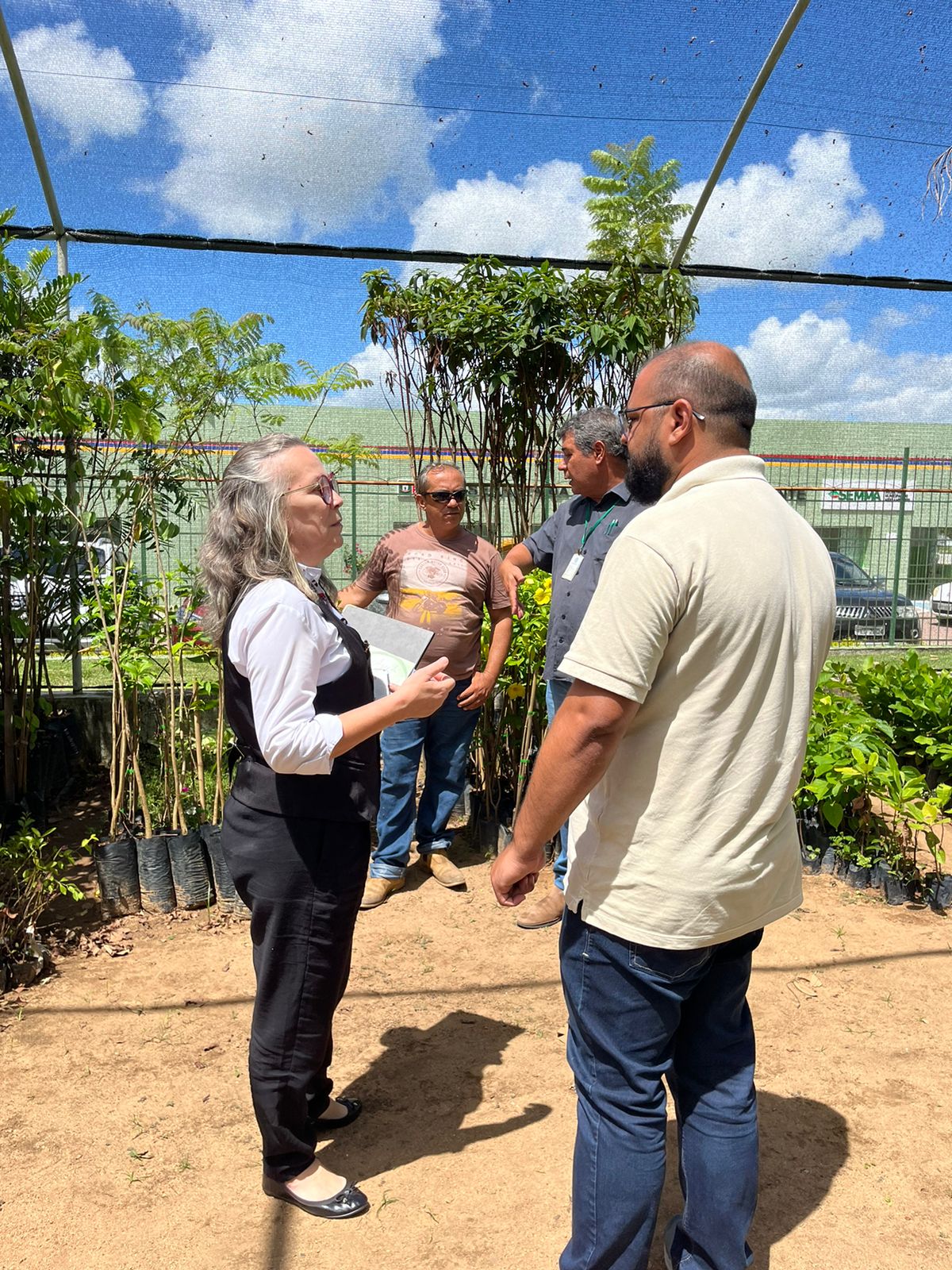 Após a reunião, os gestores foram conhecer um viveiro mantido pela prefeitura onde são cultivadas as mudas de plantas que são usadas para a arborização urbana, paisagismo de praças e canteiros da cidade, além da distribuição para a comunidade.