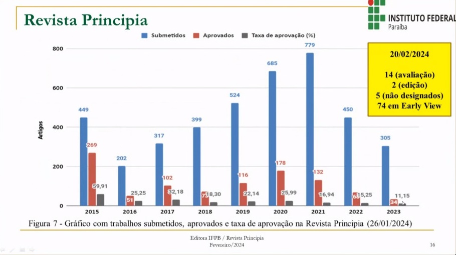 Para 2024, estão previstas diversas ações, incluindo a continuidade do trabalho de divulgação e fortalecimento das publicações da Editora IFPB, a ampliação da visibilidade da Revista Principia, atividades de aprimoramento em seu fluxo editorial e em sua política, além do desenvolvimento de parcerias estratégicas.