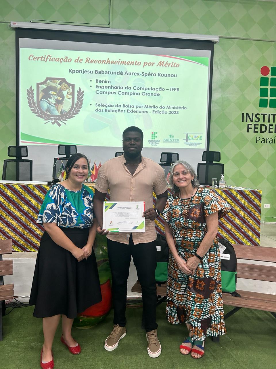 Dois alunos também foram homenageados com Certificação de Honra ao Mérito Acadêmico: Josef Mario Cadjonan, estudante do curso de Administração –Campus João Pessoa (Edição 2023); e Kponjesu Babatundé Aurex-Spéro, estudante do curso de Engenharia de Computação - Campus Campina Grande (Edição 2023).