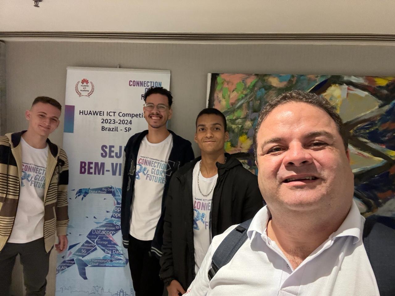Já o professor Marcelo Portela comentou sobre o nível elevado da etapa final nacional da Huawei ICT Competition, na trilha Network. “Surpreendeu diante do elevado nível dos conteúdos elencados, mas que já traz a necessidade de sintonia fina com as etapas subsequentes”, explicou. “Estamos felizes com o avanço para a próxima fase e satisfeitos em ter conhecido diversos outros times valiosos na competição. A estratégia agora é incrementar os estudos, focando também em aspectos práticos para o projeto, implementação e troubleshooting dos cenários aplicados nos desafios”, arrematou o docente.