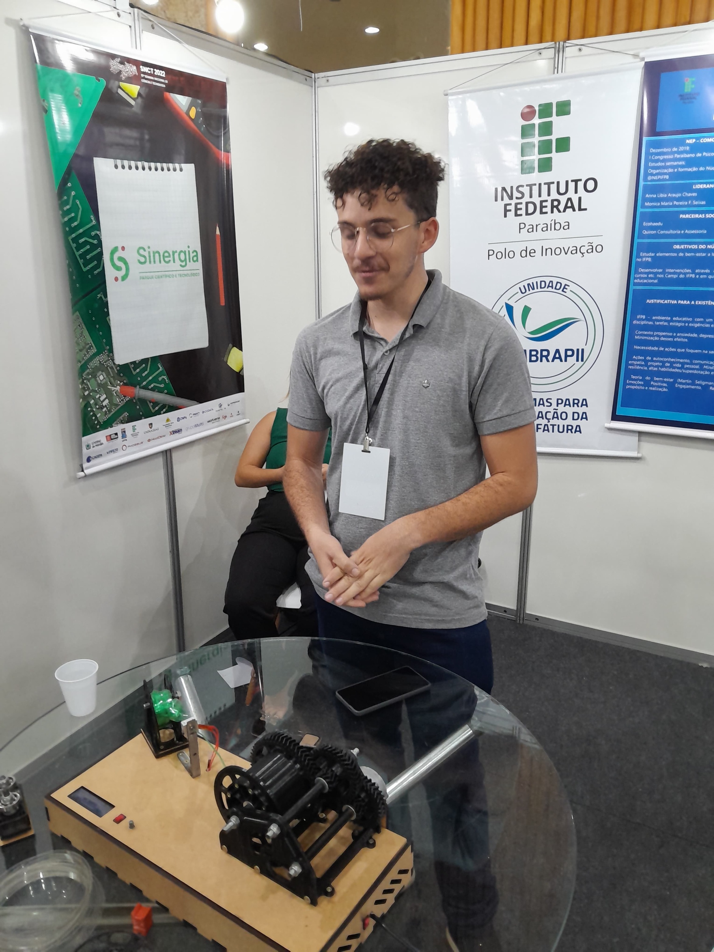 No stand do IFPB um projeto que venceu este ano uma competição mundial promovida pela Huawei na China, chama a atenção. O estudante do Campus Patos, Gabriel Ferreira, explica o funcionamento de um protótipo de CNC (sigla em inglês de Controle Numérico Computadorizado) de baixo custo. O mecanismo funciona em conjunto com uma plataforma digital que usa inteligência artificial para gerar conteúdos de disciplinas para professores de ensino fundamental e médio. “Nossa expectativa é passar essa tecnologia para outros IFs e avançar com a inovação no Brasil” disse Gabriel. O projeto teve a participação dos estudantes Emerson Medeiros e Manoel Vitor, sob a orientação do professor Filipe Lucena.