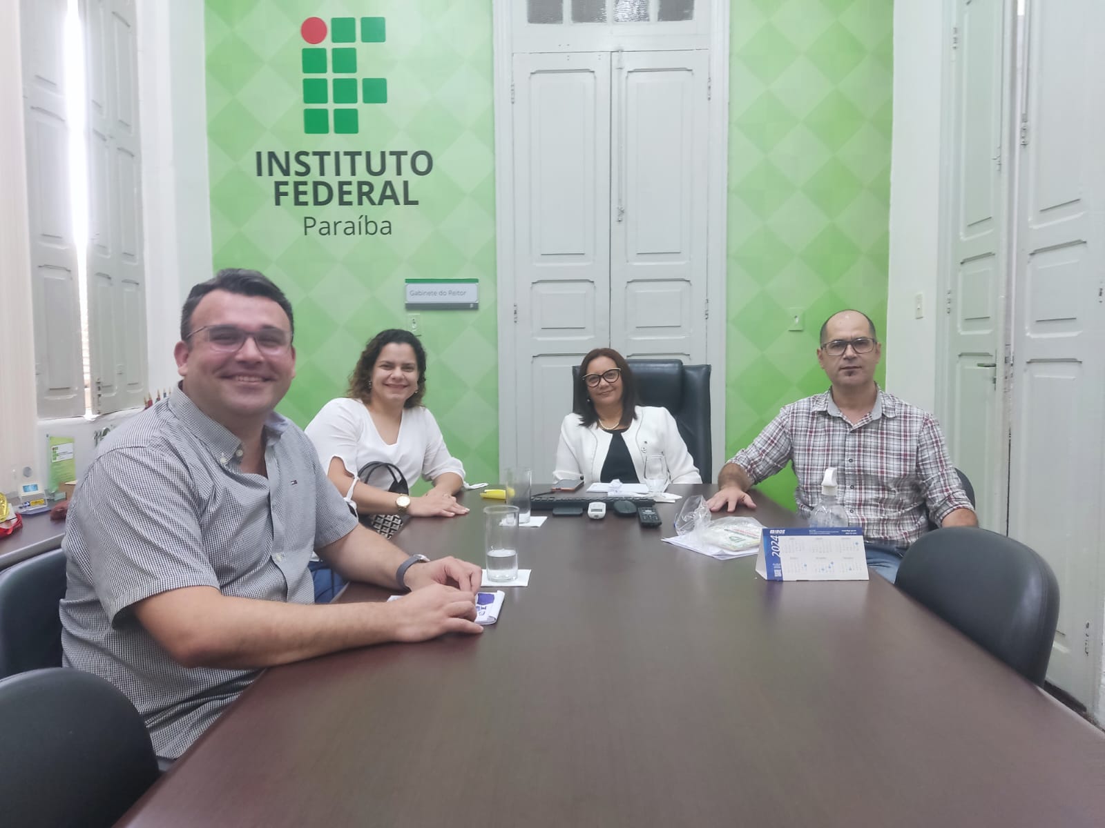 A Reitoria do IFPB recebeu na manhã desta terça feira, 24 de setembro, a servidora Laryssa Martiniano, eleita recentemente coordenadora geral do Sindicato Nacional dos Servidores Federais (SINASEFE), e Leewertton Marreiro, representante do movimento Técnicos Administrativos (TAES) na Luta, ambos do Campus Guarabira. Eles se reuniram com a reitora Mary Roberta Marinho e sua assessoria para uma avaliação geral sobre assuntos relativos a pautas defendidas pelo segmento dos TAEs.