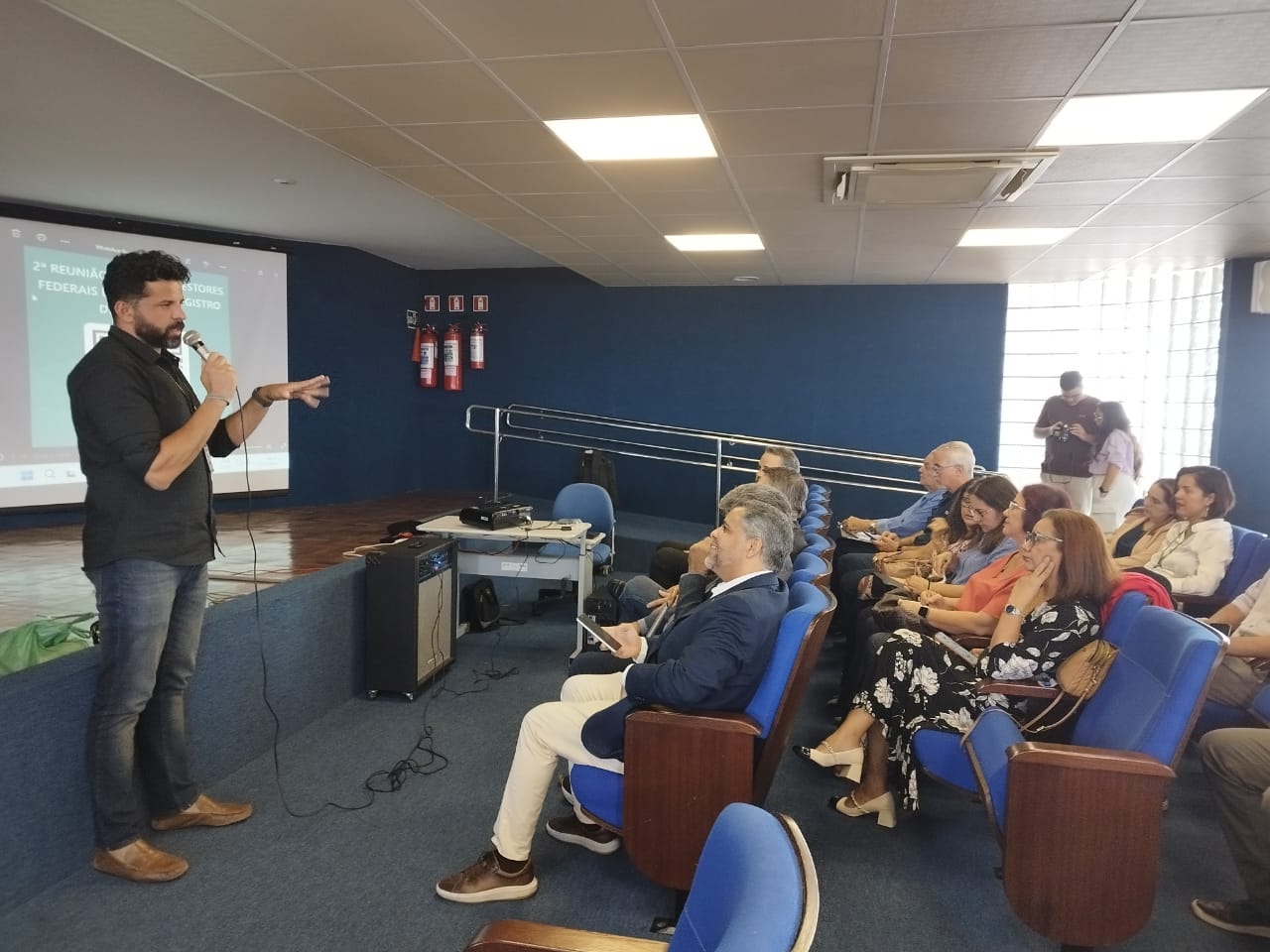 A reunião aconteceu no auditório da gerência do INSS. Os anfitriões da casa Rogério Oliveira (gerente executivo em João Pessoa) e Marcus Braga (gerente executivo em Campina Grande) apresentaram de forma breve os serviços, falaram da sua importância, dificuldades enfrentadas e mostraram o impacto da previdência no âmbito da Paraíba.