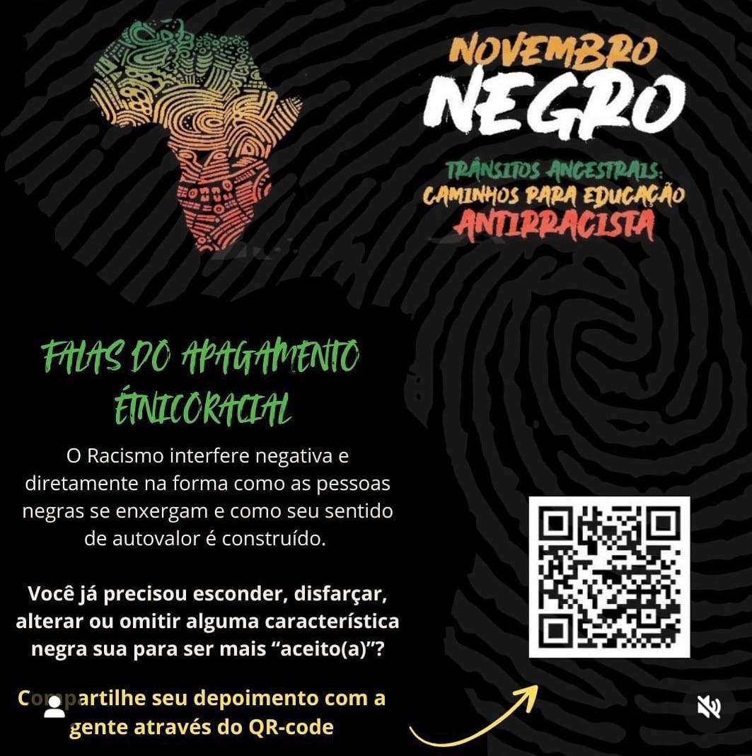 No campus João Pessoa do IFPB, desde o primeiro dia do mês teve início o evento “Novembro Negro - Trânsitos Ancestrais, caminhos para educação antirracista”, com uma vasta programação, trazendo grandes nomes em uma articulação do NEABI local, coordenado pelo docente João Edson Rufino. Foram palestras, performances, culinária, exposições e show com o músico Escurinho. Até o dia 30, tem palestras, exibição de filmes, oficinas, rodas de conversa, concertos musicais e visita ao Porto do Capim. A programação completa você confere neste link. Ainda é possível se inscrever gratuitamente no site do even. O Neabi também está desenvolvendo uma pesquisa com base em depoimentos pessoais.